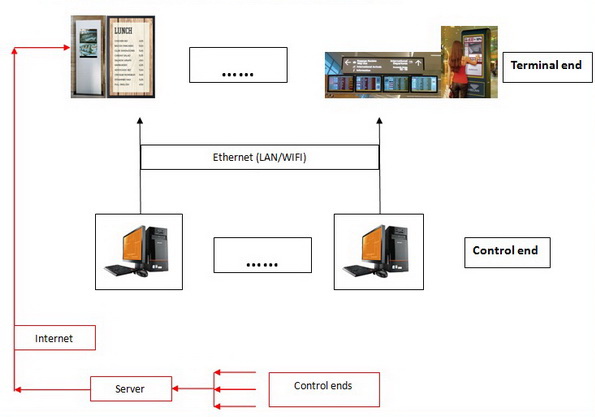 Control and update contents remotely by Internet/Ethernet. (LAN/WIFI port)