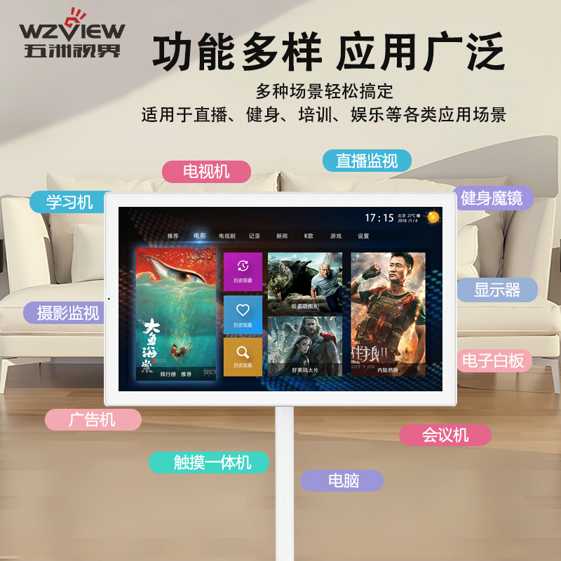 五洲視界隨心屏移動智慧屏可移動大平板無線投屏安卓12十點觸摸顯示器內置音響電池攝像頭可插電話卡閨蜜機 定制顯示器