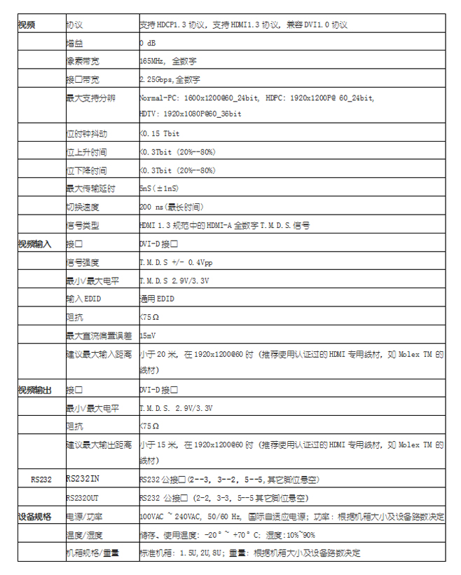 11、 DVI矩陣切換器是專門為計算機顯示信號以及高分辨率DVI圖像信號的顯示切換而設計的高性能智能矩陣開關設備,用于將各路電腦信號輸出通道中的任一通道上,該系列產品廣泛用于大屏幕投影顯示工程、大屏拼接、電化教學、指揮控制中心、多媒體會議室等場合;