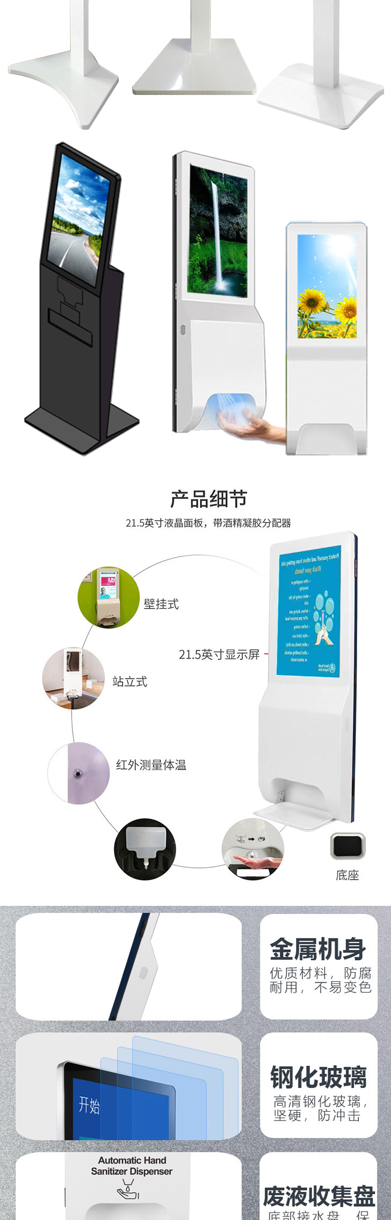 21.5寸智能測(cè)溫消毒廣告免接觸洗手液一體機(jī)壁掛款