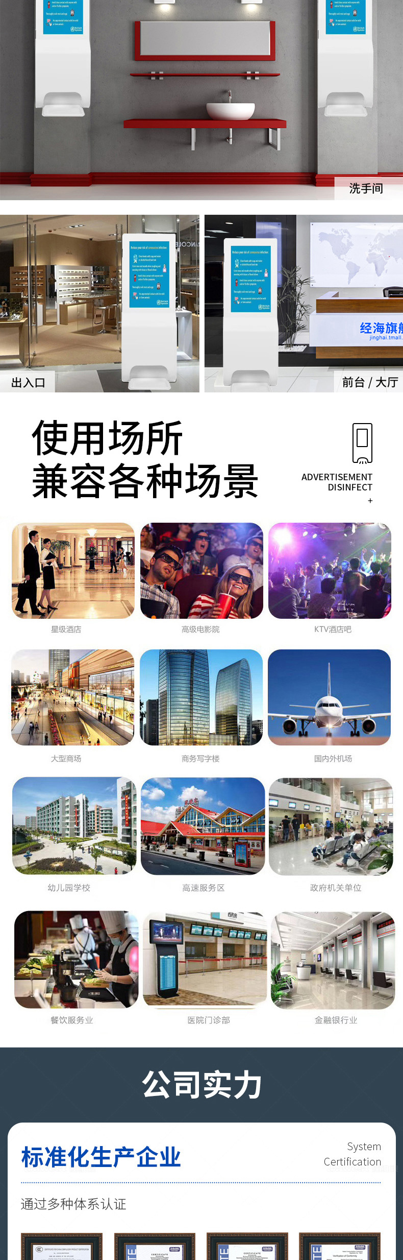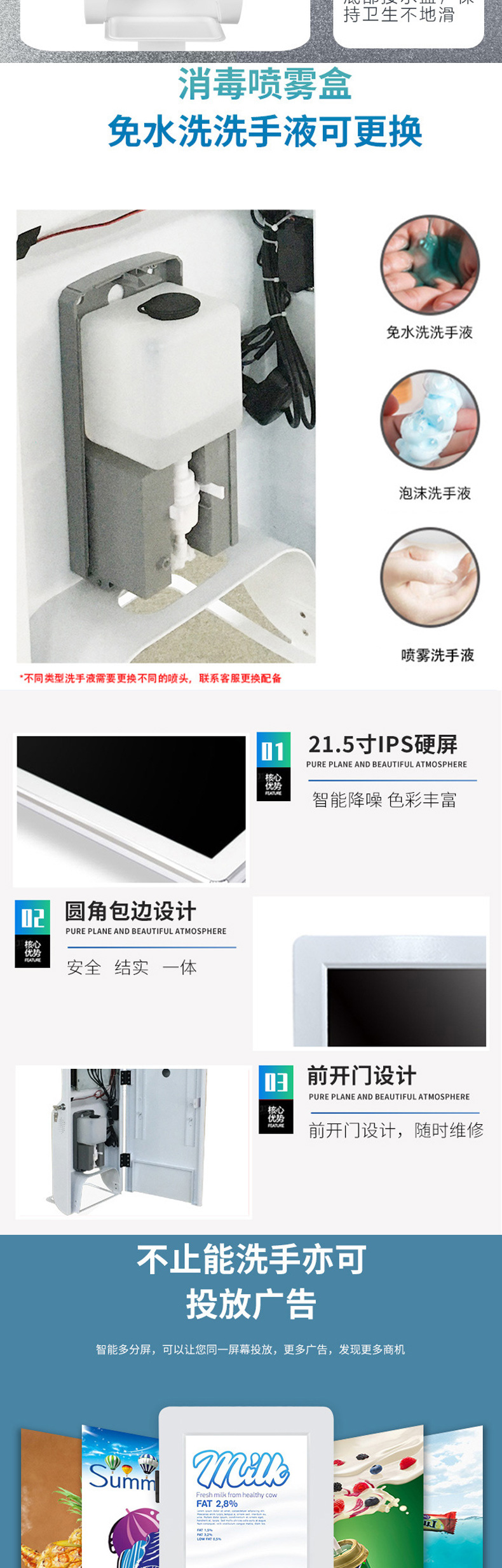 • 21.5寸智能測(cè)溫消毒廣告免接觸洗手液一體機(jī)壁掛款