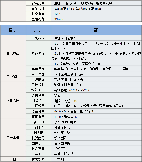 支持串口、韋根 26、34 輸出輸入,輸出內容支持配置;