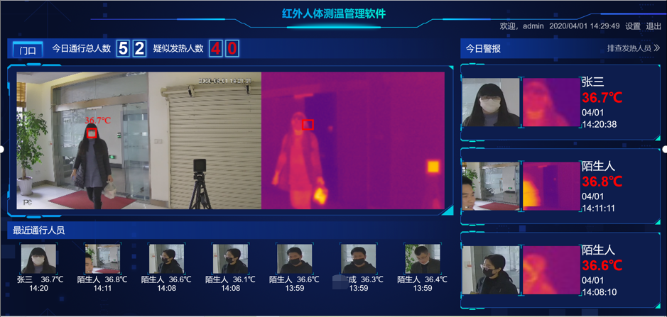 具備自動人臉識別和抓拍,可準確識別人員,和統計路過的人數,陌生人報警,重點人員報警,以圖搜圖,百萬人員秒級定位,同時快速分析后臺記錄個體人員溫度,實現通行無感,服務器端記錄,有據可查,方便管理追溯及統計分析;設備支持分布式管理,可接受上級平臺管理,共享數據、深度挖掘;開放標準接口供2次開發。