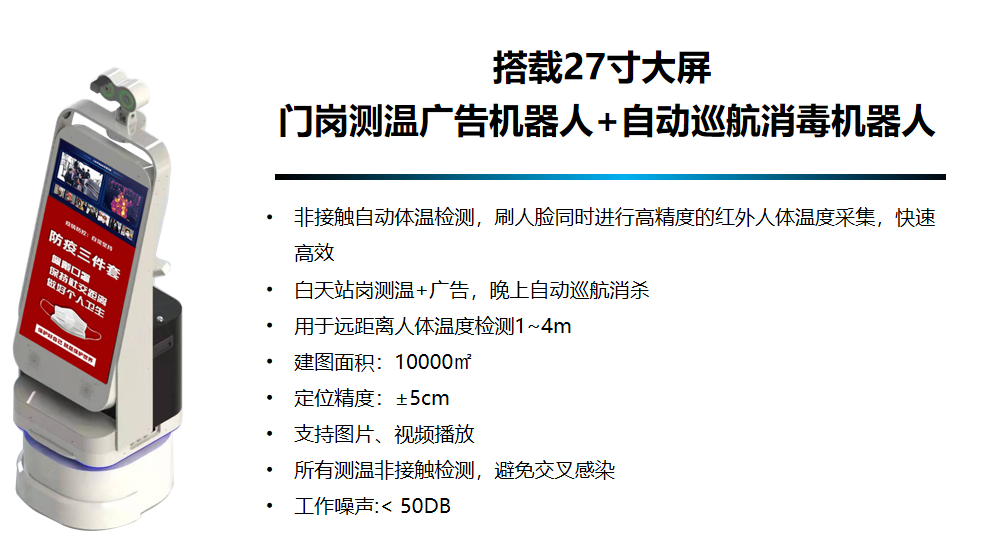SLAM定位導航,超聲波/激光防碰撞,接觸防碰撞,樓梯防跌落,自主充電功能。