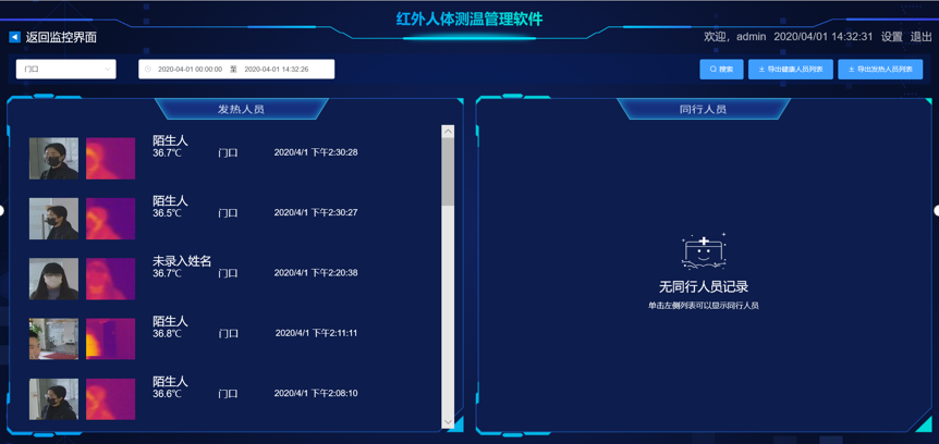 1)系統采用先進的人臉識別技術、精準的紅外測溫技術,對進出人員實行遠距離、無接觸、快速動態測溫;