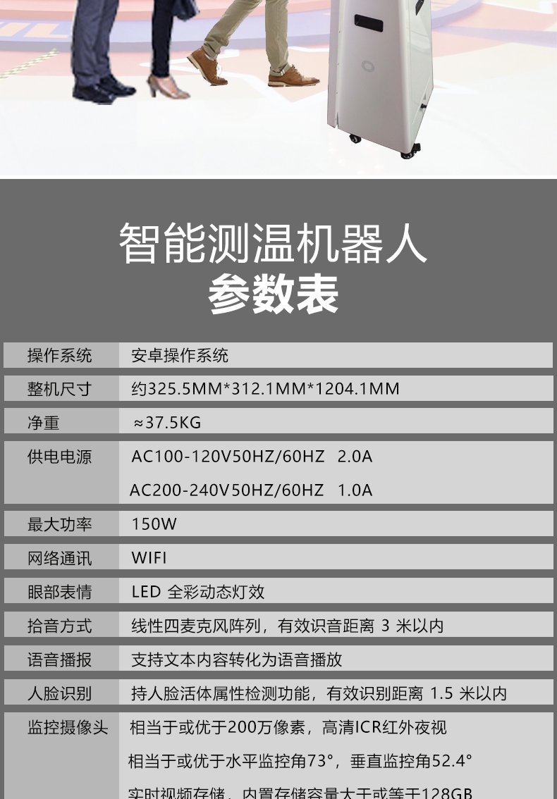 系統具備自動人臉識別和抓拍,快速毫秒級檢測額頭熱感溫度,熱感測溫精確度為0.2℃,同時WZ-FACE-ZDMI60-R1具有基于人工智能技術的自動溫度算法,無需現場人工干預,可準確識別和統計路過的人數,同時快速分析顯示個體人員溫度。