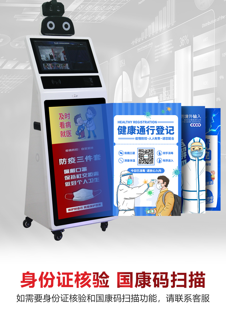 27寸高清顯示器可播放視頻、圖片、文字,防疫警示,實時通知信息,專屬云端后臺進行大屏信息管理,并可加入收益性聯動廣告平臺。