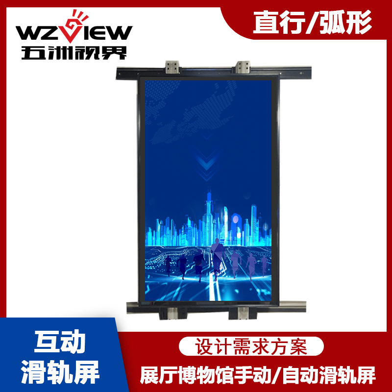 互動滑軌屏又稱滑軌電視,由軌道、電子顯示屏幕、感應器、主機等組成,可以上下左右控制顯示屏,當電子屏幕移動到預定點位時將自動播放該部分的內容并與觀眾產生互動。智能互動滑軌屏可以讓空洞的講解變身為三維立體的動畫形式。展示得更具體、更全面、更震撼,能給客戶非常深刻的印象。