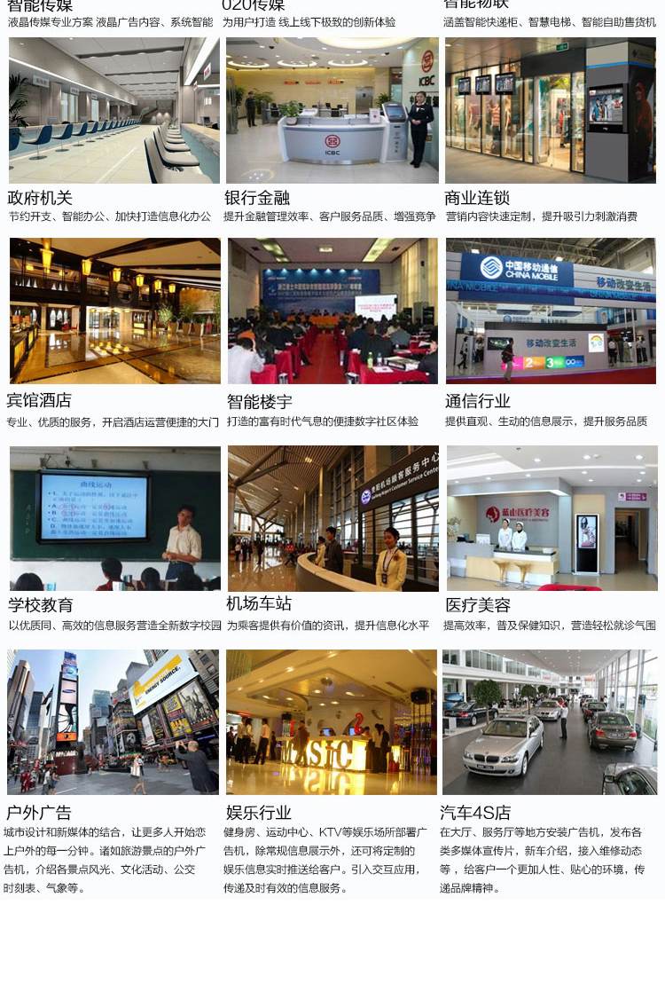 本款產品采用工業級設計理念,機身美觀輕薄,外觀新穎美觀。使用原廠全新A規液晶屏,支持2K信息源,圖像清晰逼真??砂惭b客戶端軟件,功能強大,滿足客戶多元化使用需求。兼容多種外接擴展設備,覆蓋多種場景,完美應用于智慧銀行、醫院、學校、樓宇、商超等各種場景。