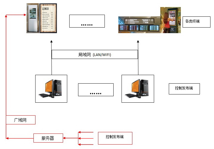 通過局域網和廣域網管理控制廣告機終端和發布信息.