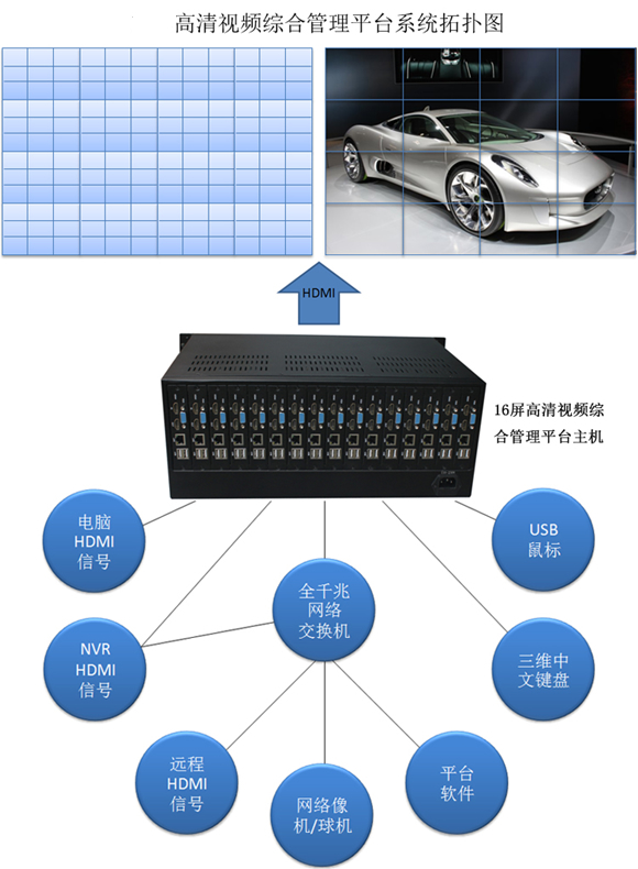 ◆本機(jī)只做單機(jī)16屏以內(nèi)的系統(tǒng)用,超16屏的請選擇全能型的高清視頻綜合管路平臺